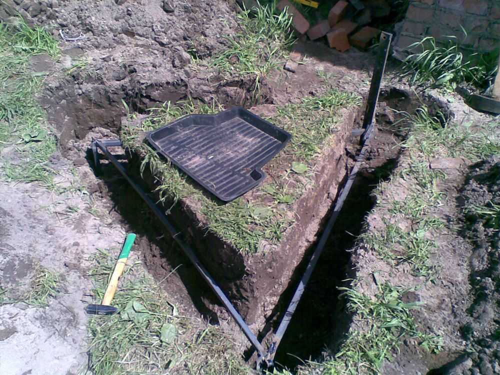 - Отмерьте от внешней поверхности одной из стен дома 1 м. Выдержав это расстояние, возьмите лопату и выкопайте канаву, принимающую вид равностороннего треугольника, сторона которого достигает 2 м, а глубина приближается к размерному значению 0,5 м.