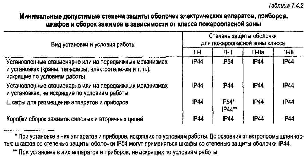 Попутно отметим еще пункт, который касается класса минимальной степени защиты такого шкафа, если он находится в пожароопасной зоне: