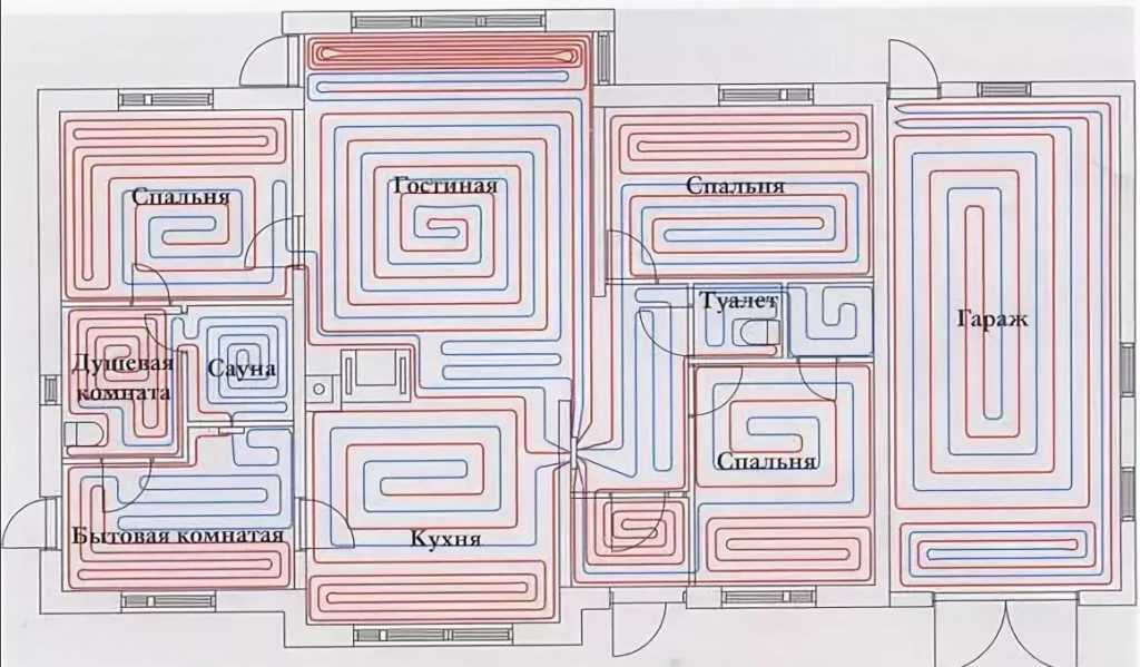 Для этого следует спроектировать укладку контуров теплого пола зонировано. Т.е. труба контура водяного пола должна быть проложена только в одной комнате. Если площадь комнаты больше, чем 12 кв. м. следует уложить два или три контура трубы.