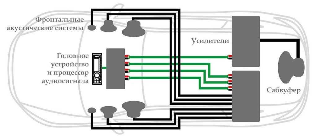Вся установка займет не менее 1-3 часов, все зависит от опыта водителя и марки самой машины. Самый сложный этап — прокладывание кабеля питания к усилителю. Поскольку обычно установка проводится в багажнике, то все провода придётся прокладывать через салон к аккумулятору. Поэтому до начала всех работ необходимо снять с АКБ клеммы, иначе может случиться короткое замыкание.
