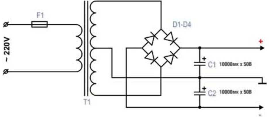 Для оценки напряжения обмотки задействуется мультиметр. После этого пользователю нужно рассчитать количество витков, при которых можно получить напряжение в 12 Вольт. Еще в цепь нужно включить выпрямитель из 4 полупроводников типа Д226. Система оснащается индуктивной катушкой с 2 конденсаторами по 10 тыс. мкФ. Для сборки диодного моста задействуют пластину гетинакса.
