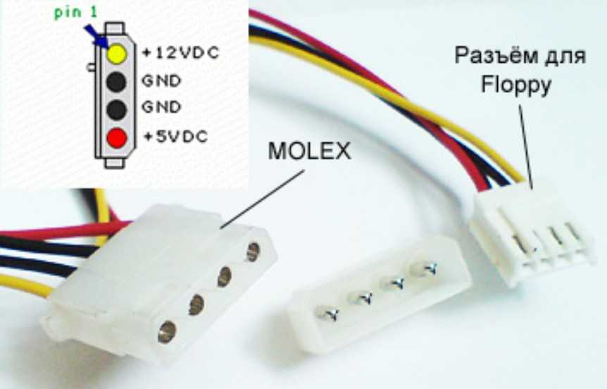В качестве переходника используем разъем блока питание через который использовался для присоединения жестких дисков ПК.