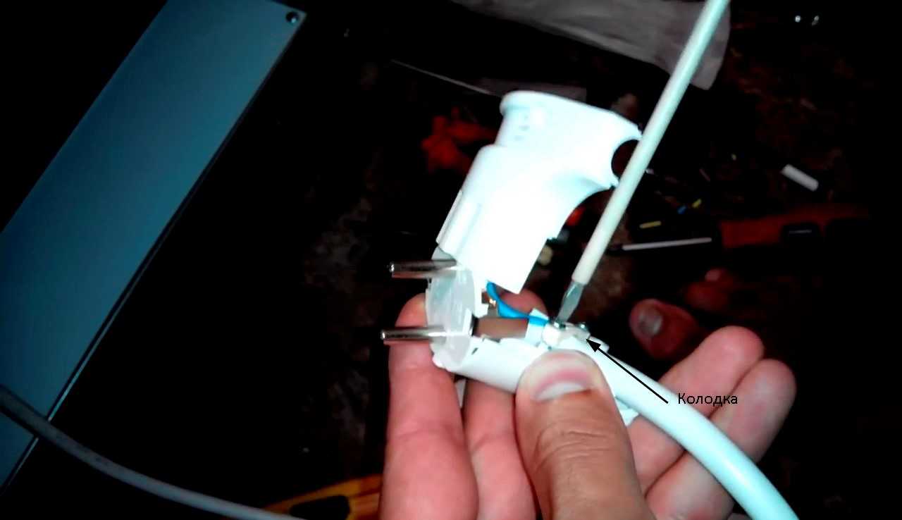 Монтируя вилку, надо сначала отмерить удаляемую часть изоляции. Зачищенная жила должна охватывать стержень винта. Необходимо получить максимальный по площади контакт с каждой клеммой вилки. Кабель обязательно зажимается колодкой, расположенной внутри корпуса вилки.