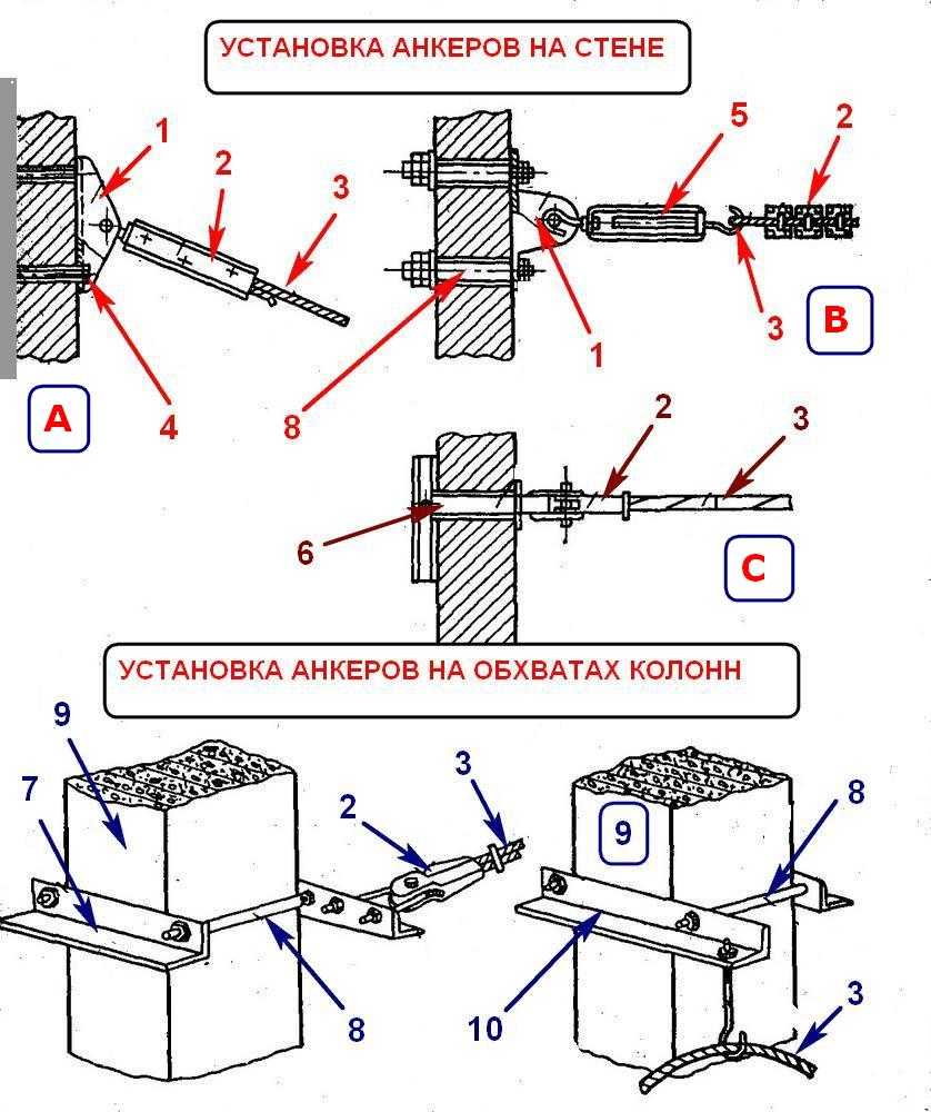 Крепление анкеров сквозными болтовыми соединениями к стене. Это более надежные крепления анкеров к стене (смотри рисунок A и B).