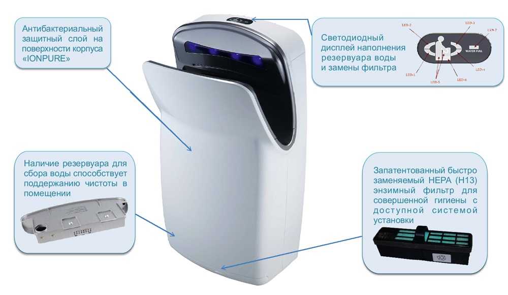 Несмотря на то что сушилка на первый взгляд может показаться достаточно простым устройством, она воплощает в себе множество важных функций. Кроме того, что устройство быстро сушит руки, оно также: