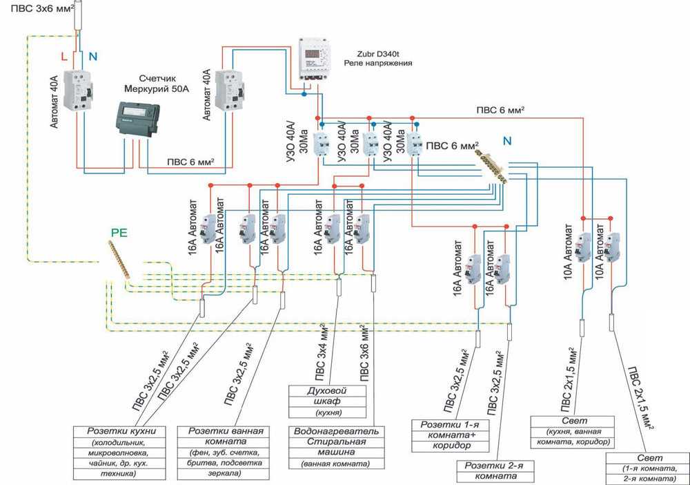 Что касается безопасности человека, то схема электропроводки предусматривает ряд мер: