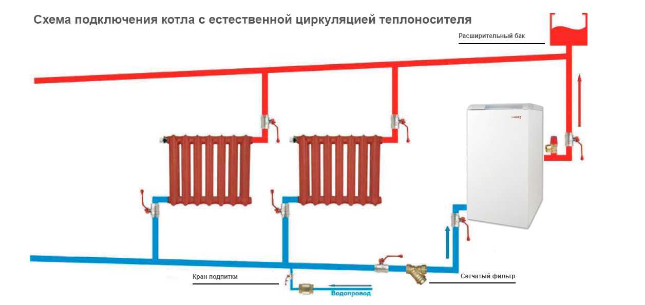 При отсутствии специальных указаний при установке котла используются такие правила: Ширина прохода с лицевой стороны котла должна быть не менее 1м. В небольших частных домах применяются такие типы двухтрубных систем отопления: тупиковая; коллекторная лучевая. Основным минусом такой разводки является некоторое увеличение метража труб. В этом случае горячая вода, идущая от котла, поступает к радиаторам по одной трубе, а отвод уже остывшего теплоносителя выполняется по другой. Считаются одними из самых долговечных и экономичных котлов.