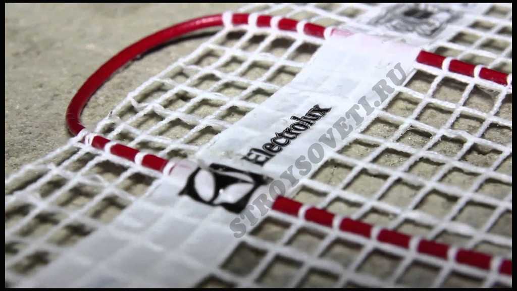 - После установки термостата от рулона отматывается нужная по длине часть материала и укладывается на разметку. Сетка отрезается по нужной длине, а кабель перекидывается на вторую и последующие полосы.