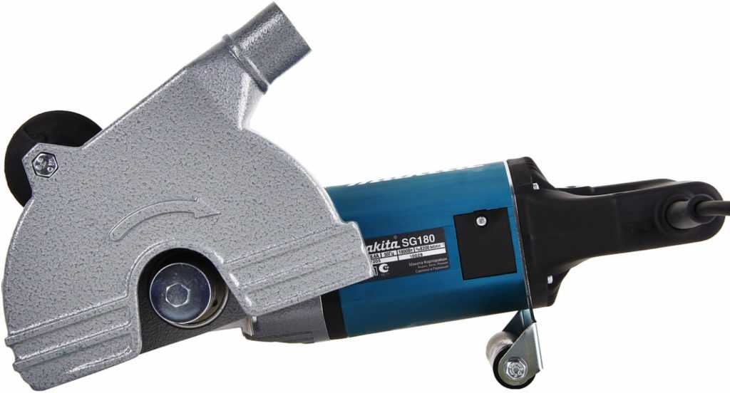 Максимальная глубина реза 65 мм. В комплект поставки входят распорные шайбы разных толщин, бороздодел, ключ под два отверстия изогнутый, дополнительная рукоятка и всасывающее колено.