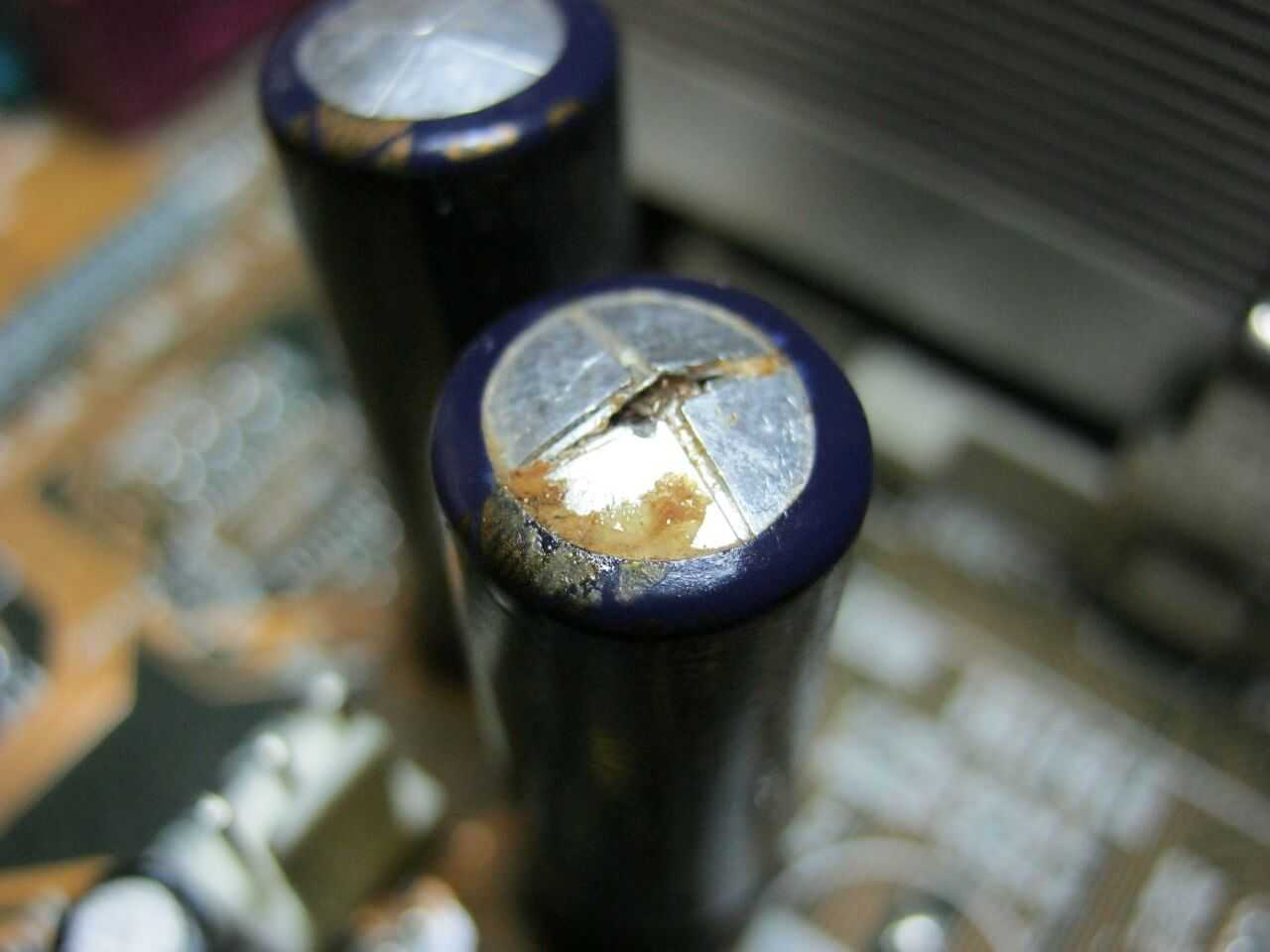 - вздутие, деформация верхней насечки на импортных электролитических конденсаторах;