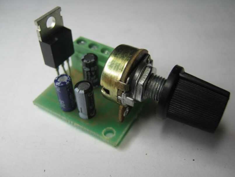 Напряжение на выходе регулируется при помощи переменного резистора.