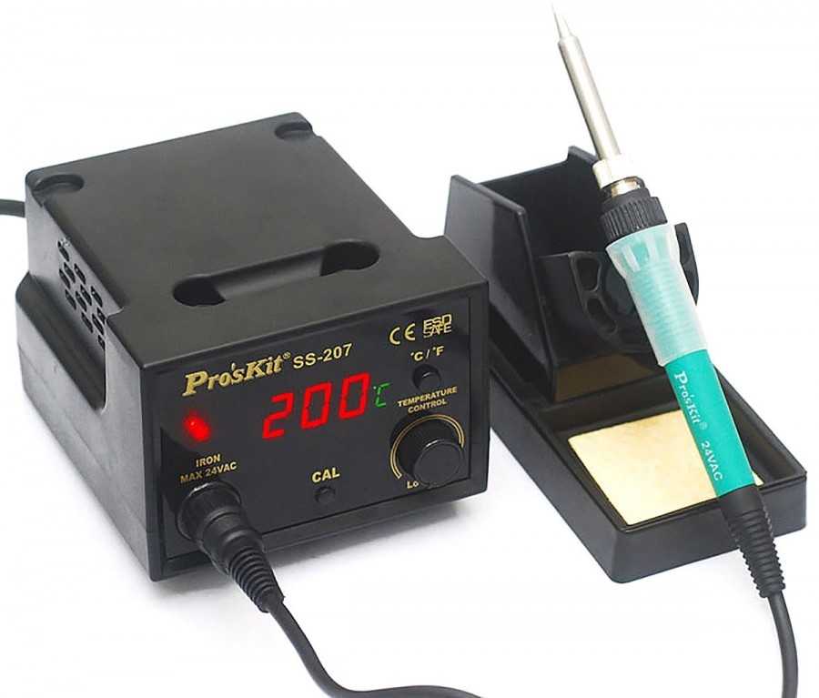 Станция паяльная контактная ProsKit отличается компактными размерами и удобством в работе