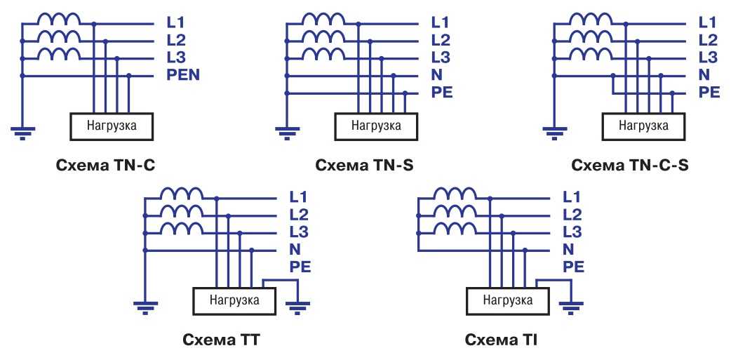 Данная система используется только с двух- и трёхфазными установками. Металлический корпус электрооборудования и другие токопроводящие элементы соединяются с контуром заземления здания.