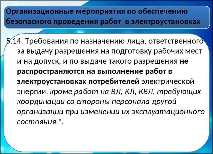 - Правильная организация перерывов в рабочем процессе, переходов на иное место проведения операций и завершения манипуляций в электроустановках.