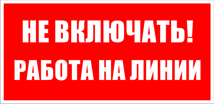«Не включать! Работа на линии» – плакат переносной, запрещающий подачу на линию напряжения. Вывешивается на ключах и приводах управления коммутационных аппаратов, включение которых может подать на линию напряжение.