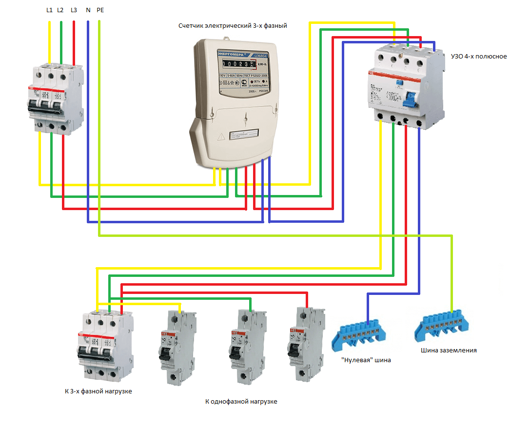 На вводном щитке потребителя (обычно, это общий ввод на объекте: многоквартирный дом, офисное здание и прочее) имеются уже две шины: рабочий нуль, и защитное заземление. Далее к потребителям идут привычные и безопасные силовые кабели: трехжильный к однофазным электроустановкам, и пятижильный к трехфазным.