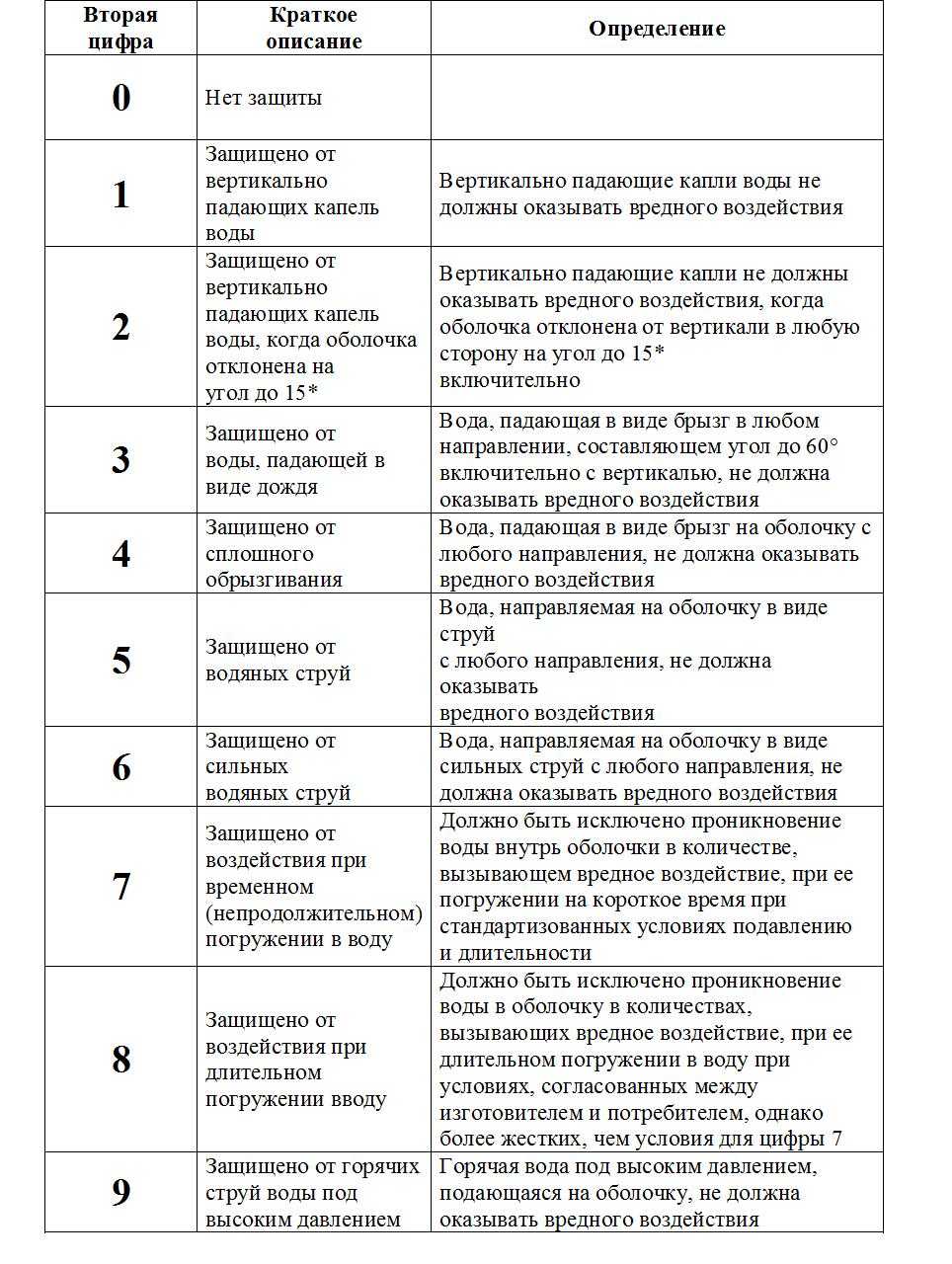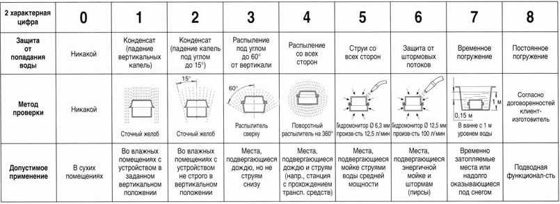 Таблица степени защиты электрооборудования ip от воды (вторая цифра)