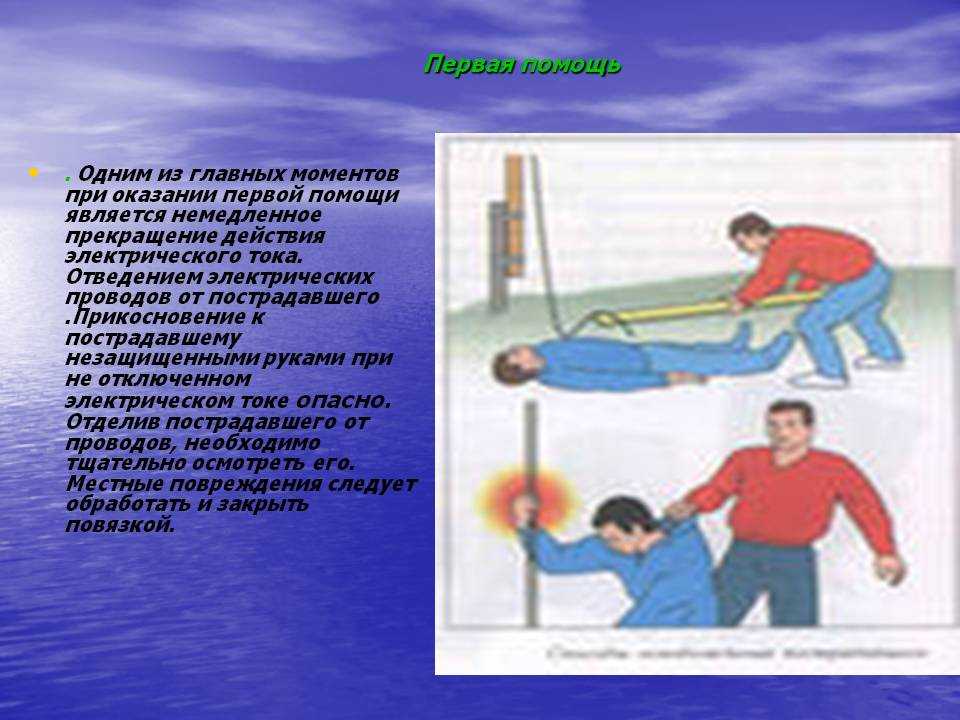 Последствия от полученной электротравмы могут быть различными — от легкого головокружения до остановки сердца. Оказанная вовремя доврачебная помощь может спасти жизнь пострадавшему.