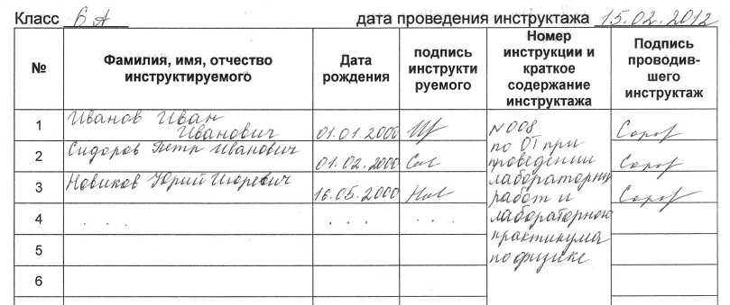 Журнал регистрации проведения инструктажа по технике безопасности при работе с электрическим током
