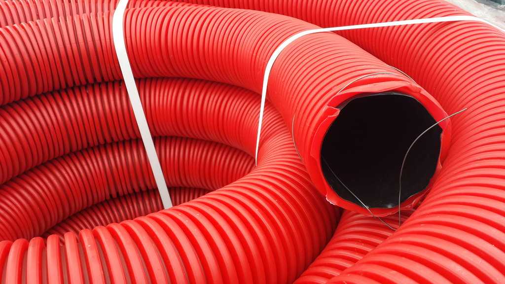 Обратите внимание! В зависимости от назначения выделяют две разновидности гофрированных труб: для электрокабелей и для прокладки канализации. Вторые — изделия с диаметром от 110 мм