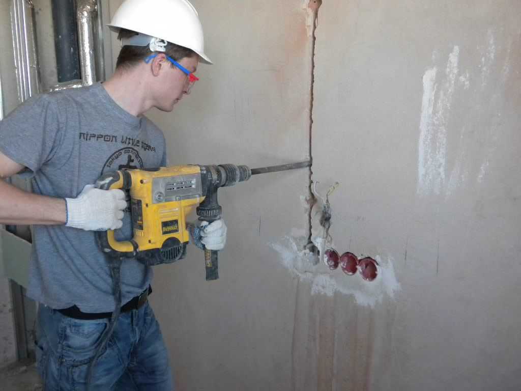 Процесс штробления стены