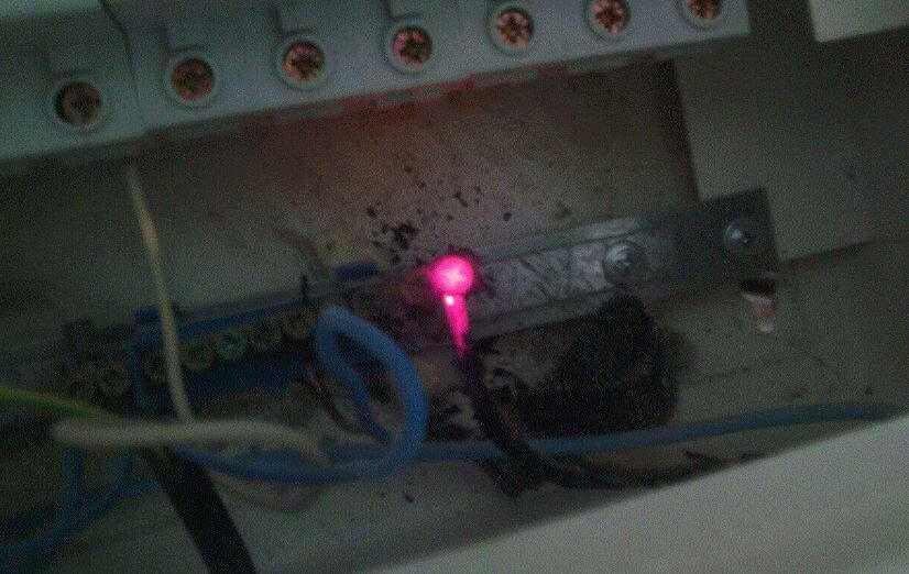 - Основной проблемой может быть место подключения силовых кабелей в квартирном щитке. Обычно входной кабель крепят к медной шине, от которой пойдут провода дальше в квартиру. Ослабленный контакт на шине приводит к постепенному нагреву кабеля, также возможно искрение. Достаточно зачистить провод и немного подтянуть контакты.