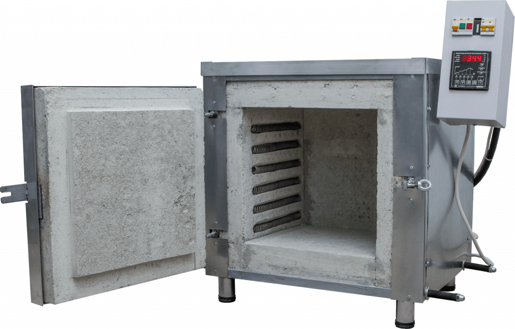 Печь рассчитана на 220 В переменного тока. Разогревается до максимальной температуры 950 градусов в течение часа. Вес печи около 10 кг.