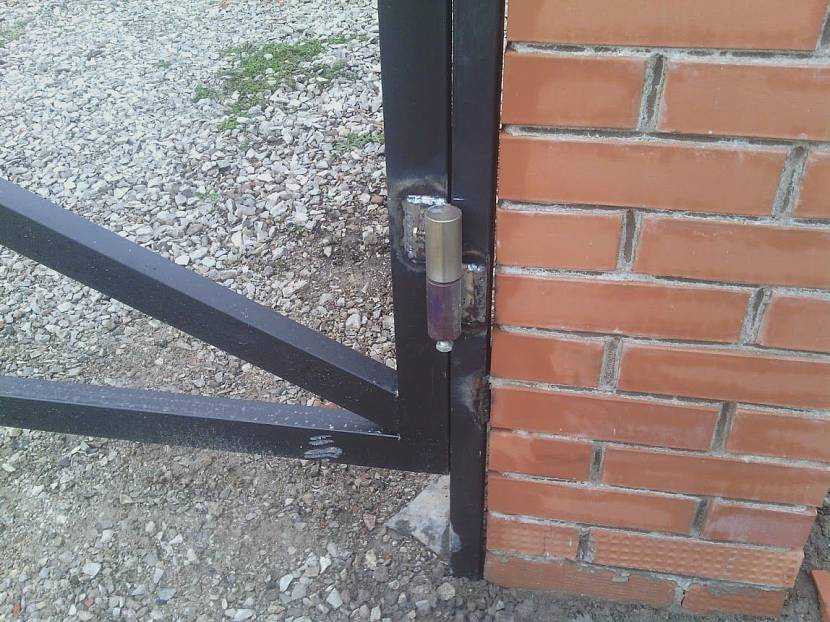 Опытные сварщики рекомендуют сначала приварить навесы к створкам, уложив их на ровную горизонтальную поверхность. К ним приваривают половинку в виде полого цилиндра, а к опорам впоследствии – ответную часть со штырем (штырем вверх). От верхнего и нижнего края отступают примерно на 15 см.
