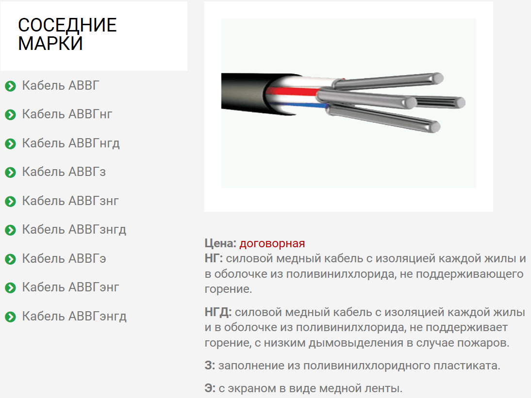 Цены на кабель АВВГ можно посмотреть перейдя по ссылке