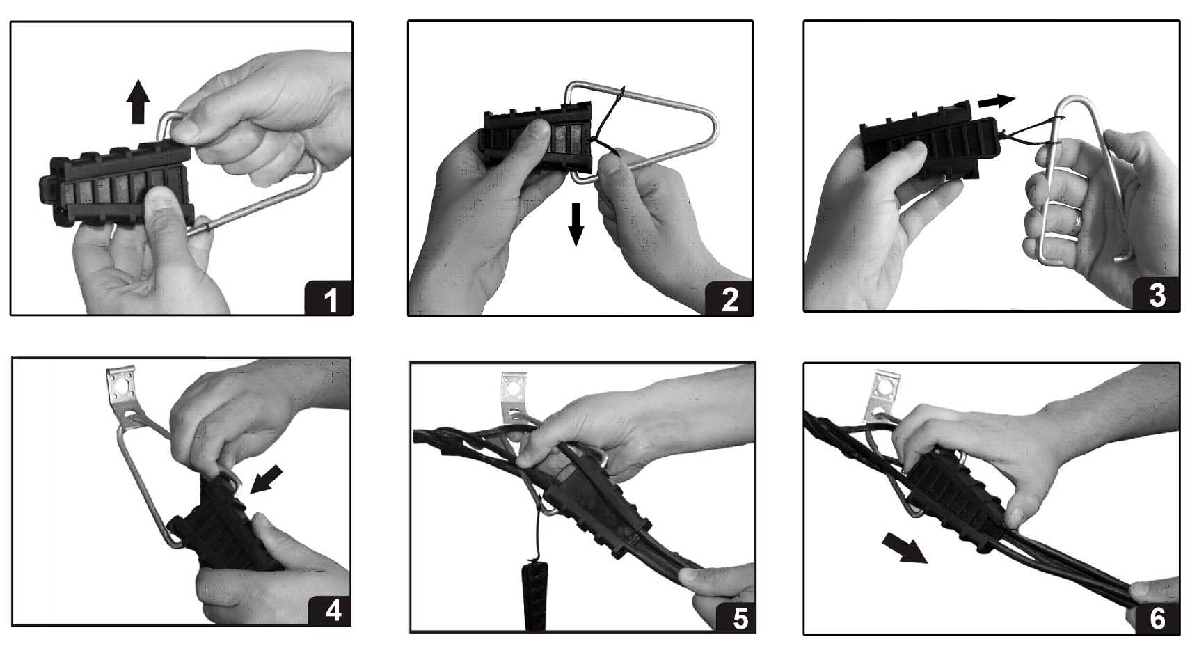 Чтобы вставить провод, нужен зажим, который можно использовать для соединения без снятия изоляции кабеля. Чтобы подвесить провод длиной более 25 м, необходимо протянуть кабель между клеммами. Кронштейн закреплен на опоре для удобного и быстрого монтажа кабеля.
