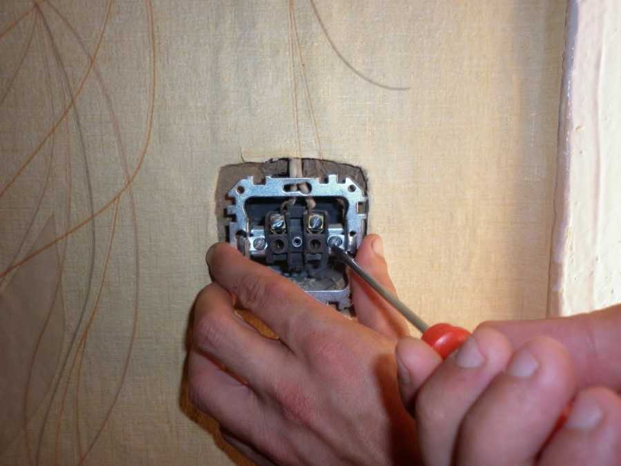 - Демонтировать основание выключателя, а на его место установить розеточное и соединить его контакты с освободившимися проводами.