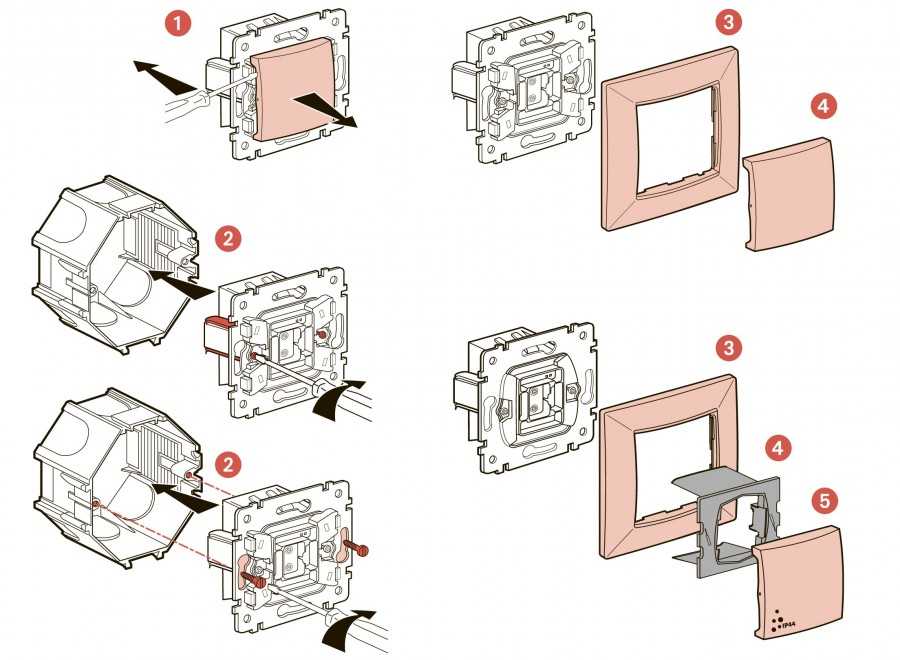Если посмотреть на схему, то в таком положении источник света включен. Тестируем работу устройства, хотя первую проверку лучше произвести еще до того, как полностью закреплен внутренний механизм — чтобы не пришлось переделывать Итак, для установки нового выключателя нам понадобились инструменты отвертка, плоскогубцы, нож, кусачки, индикаторная отвертка , немного изоляционного материала и 20 минут времени.