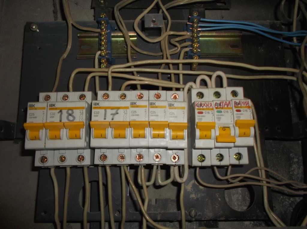 В распределительном щитке часть электропроводки алюминиевая, часть медная, с новыми автоматами.