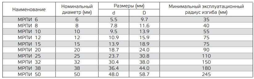 Технические характеристики металлорукавов РЗ-ЦП и МРПИ: