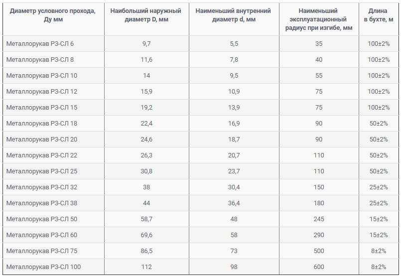 Учитывая потребности электромонтажа, производителями освоен выпуск продукции весьма широкого диапазона внутренних диаметров металлорукавов, от 10 до 100 мм.