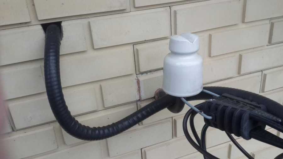 Ввод электричества в гараж традиционно обеспечивают «гусаки» – дюймовые трубы из металла, ставящиеся на крышах. Вершины стоек служат для закрепления штырей, оснащенных керамическими изоляторами. Подобный способ соединения допустим лишь тогда, когда он упомянут в технических условиях, выдаваемых электросетевыми компаниями. Стандартная высота «гусаков» – 2-2,2 м, свешиваемый конец кабеля не должен опускаться ниже 2 м.