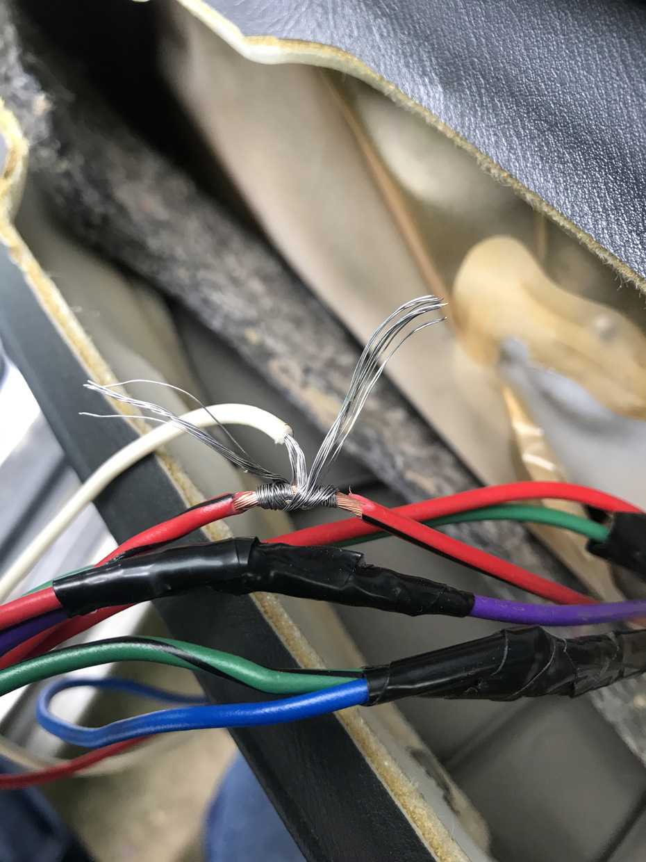 1Зачищал в нужном месте изоляцию и делал в проводниках окошко
