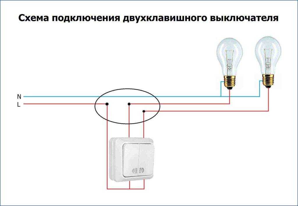 Схема подключения двухклавишного выключателя
