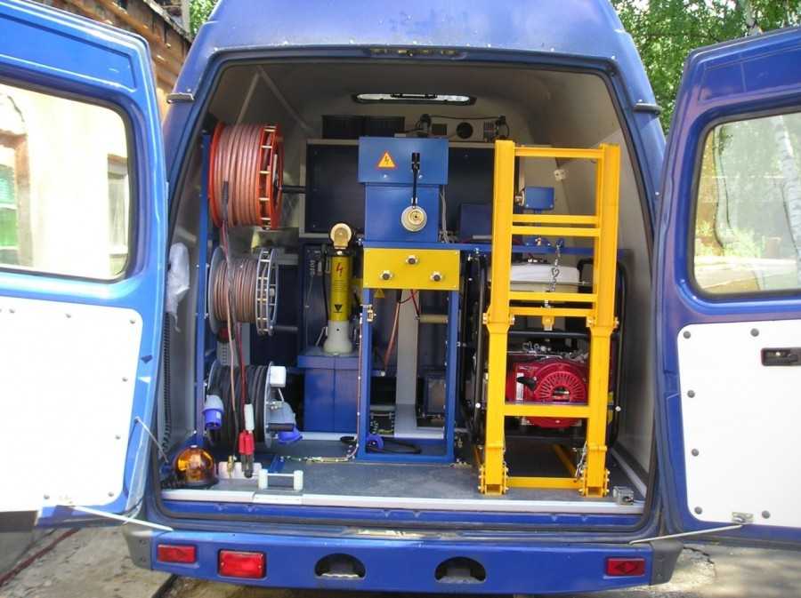 - к поврежденному силовому кабелю подключают высоковольтный ток, используя для этого генератор высоковольтных разрядов;