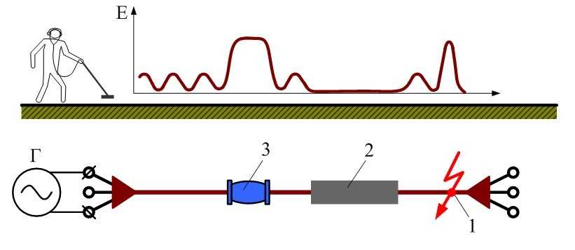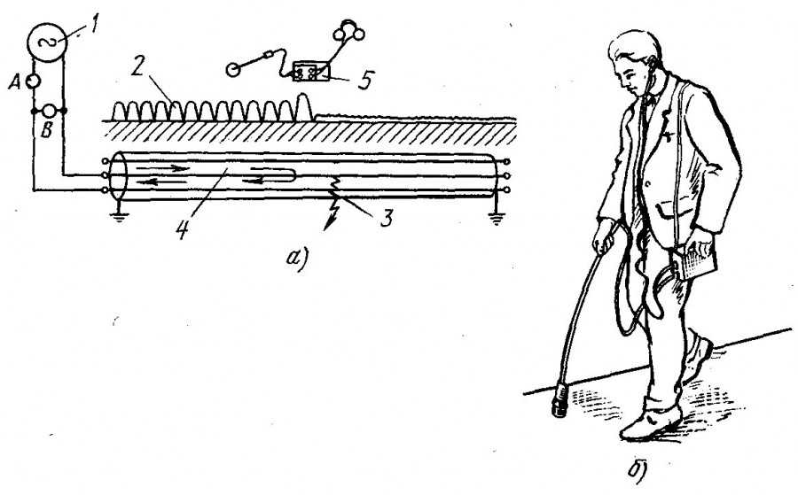 Рассмотрим теперь, как определяют участок повреждения кабеля индукционным методом, который является более точным и дает шанс установить отрезок неисправности прямо в КЛ, погрешность этого способа не превышает 50 сантиметров.