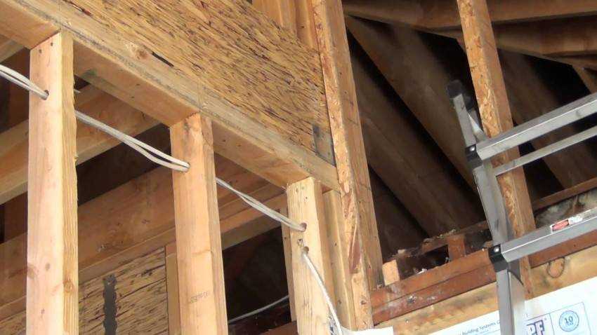 При обустройстве данной проводки используется жесткий провод с двойной/тройной изоляцией из материалов, не поддерживающих горение. Чтобы закрепить линию на стенах, установите специальные скобы. Для снижения вероятности возгорания между кабелем и деревянной стеной следует разместить подложку из асбеста или металла. Ее ширина напрямую зависит от толщины кабеля и делается на 20 мм больше (линия прокладывается прямо посередине).
