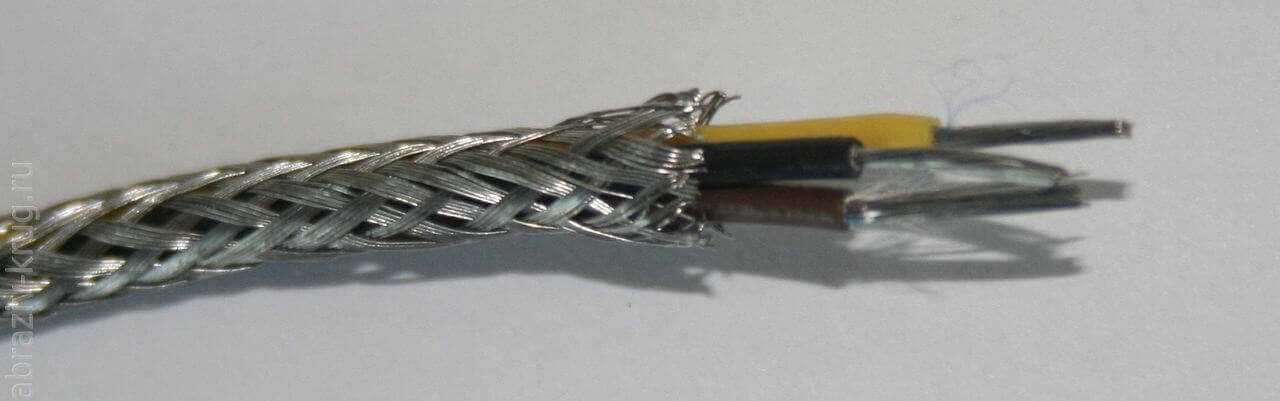Экран также выполняется из луженных медных жил диаметром не менее 0,15 мм. Он служит дополнительной механической защитой, но главное его свойство – защита от электрических помех. Экран предохраняет от искажения сигнала, которые происходят под воздействием электромагнитных помех.