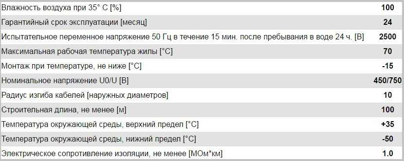 Такие провода можно без затруднений использовать в сетях с напряжением до 450 В и частотой не более 100 Гц. Для постоянного тока кабель может применяться при напряжении до 1000 В. Наибольшее разрешенное значение тока – 40 А.