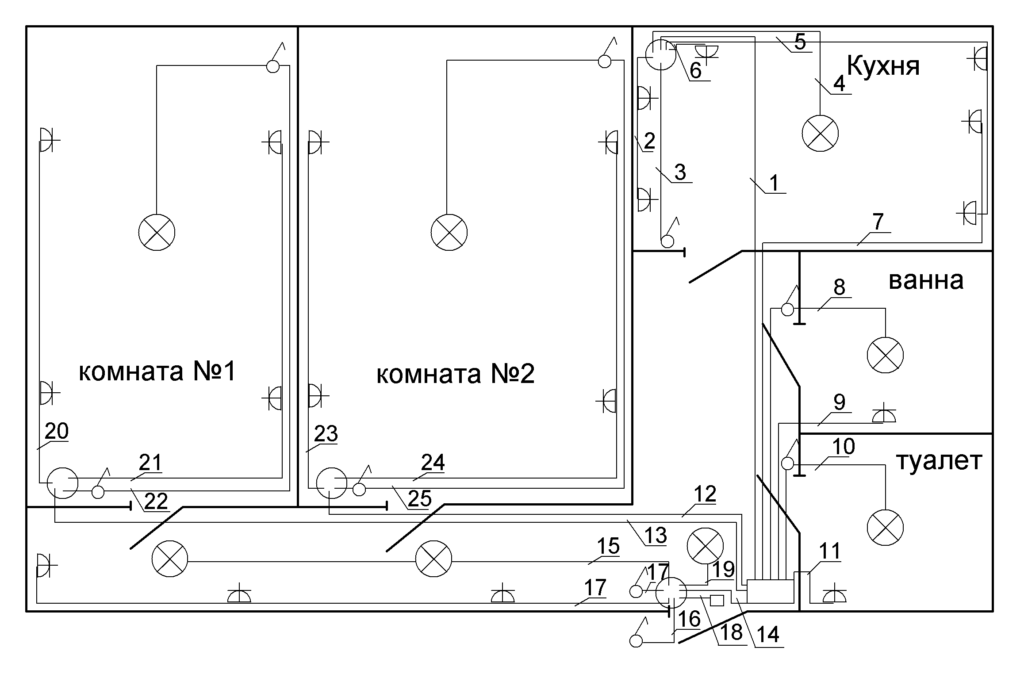 В общем случае можно определить следующие шаги при замене электропроводки в двухкомнатной квартире: