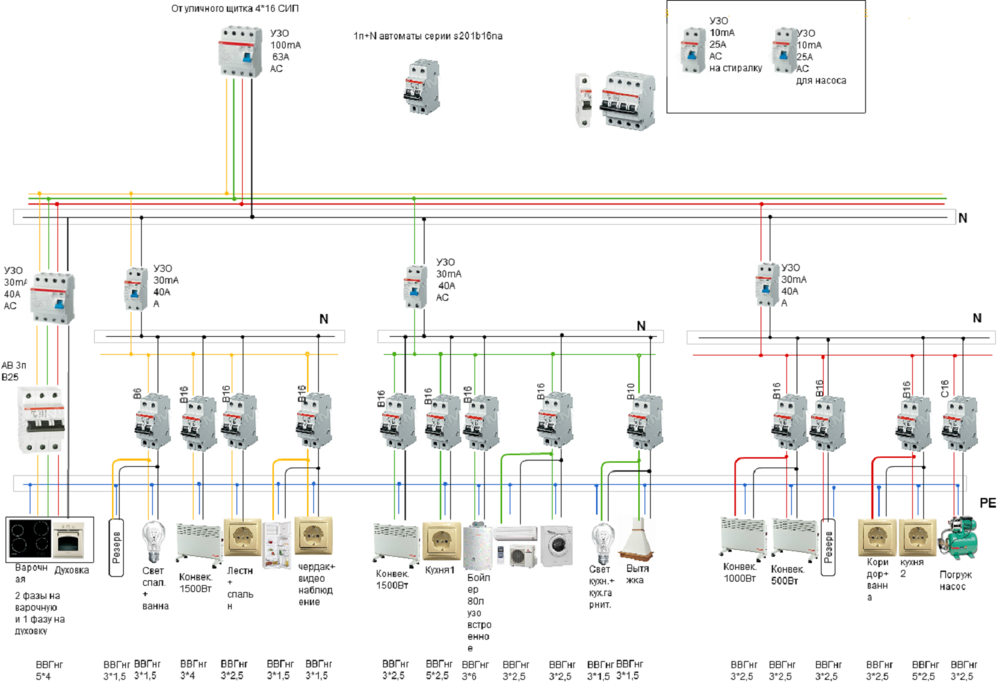 Заключительным аккордом является сборка схемы подключения вводно-распределительного электрощита всей квартиры.