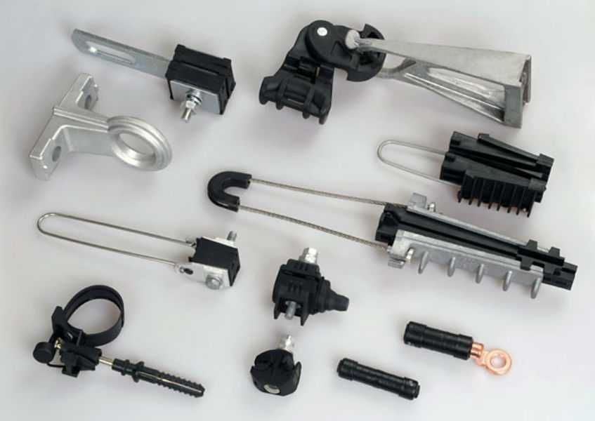 Для крепления проводов к несущим поверхностям или опорам используют специальные анкерные и поддерживающие зажимы и крюки. Для соединения или монтирования отводов не требуется разделка и зачистка от изоляции, поскольку используются прокалывающие зажимы.