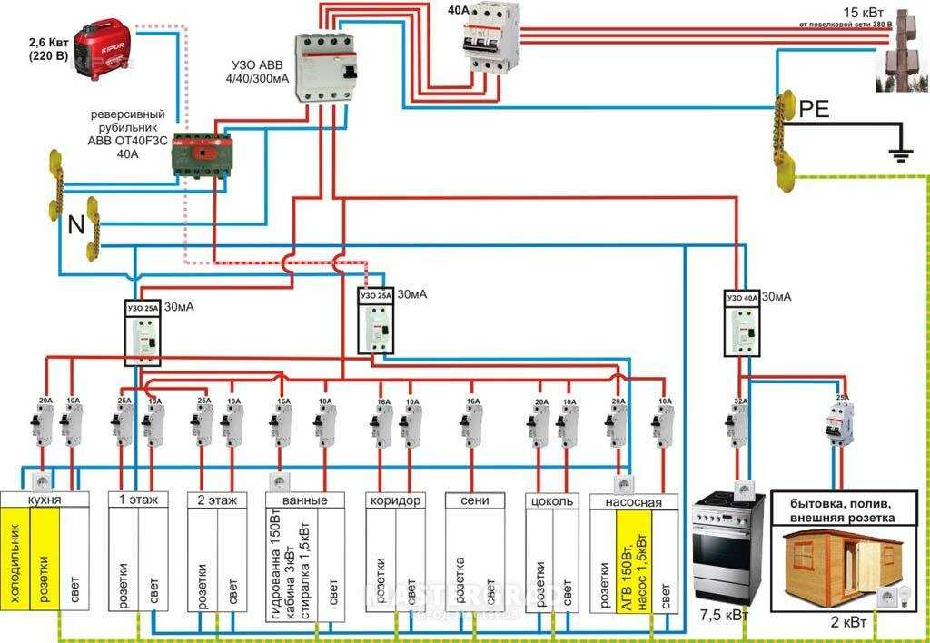 Электрик обязан построить схему с учетом всех особенностей помещения и фантазий клиента. Главная задача электрика заключается в том, чтобы поделить провод на разные линии, которые будут правильно работать. Данная цель требует верного распределения нагрузки, а также организации УЗО.