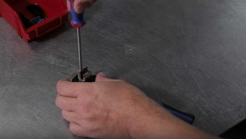 Вывинтив винт, можно снять и саму губку. При этом следует быть осторожным, поскольку под ней находится пружина и регулировочный конус. Их тоже надо аккуратно вынуть.