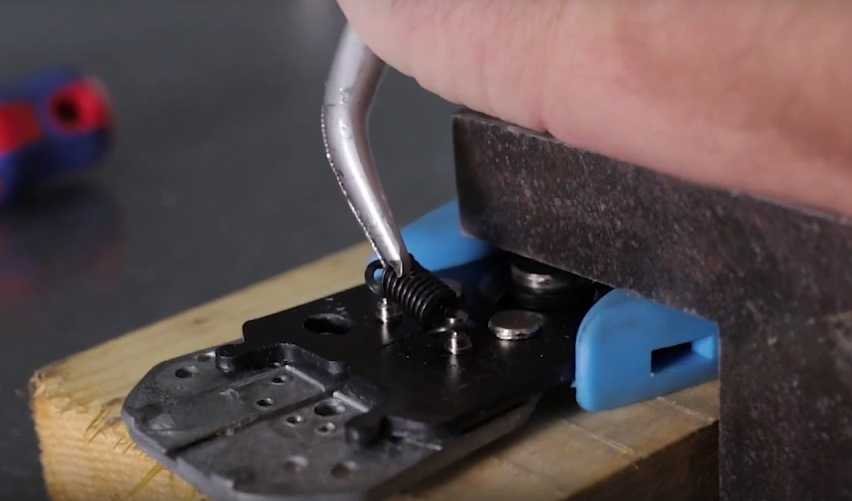 Теперь можно переходить к самой сложной операции в процессе разборки – снятию очень тугих возвратных пружин.