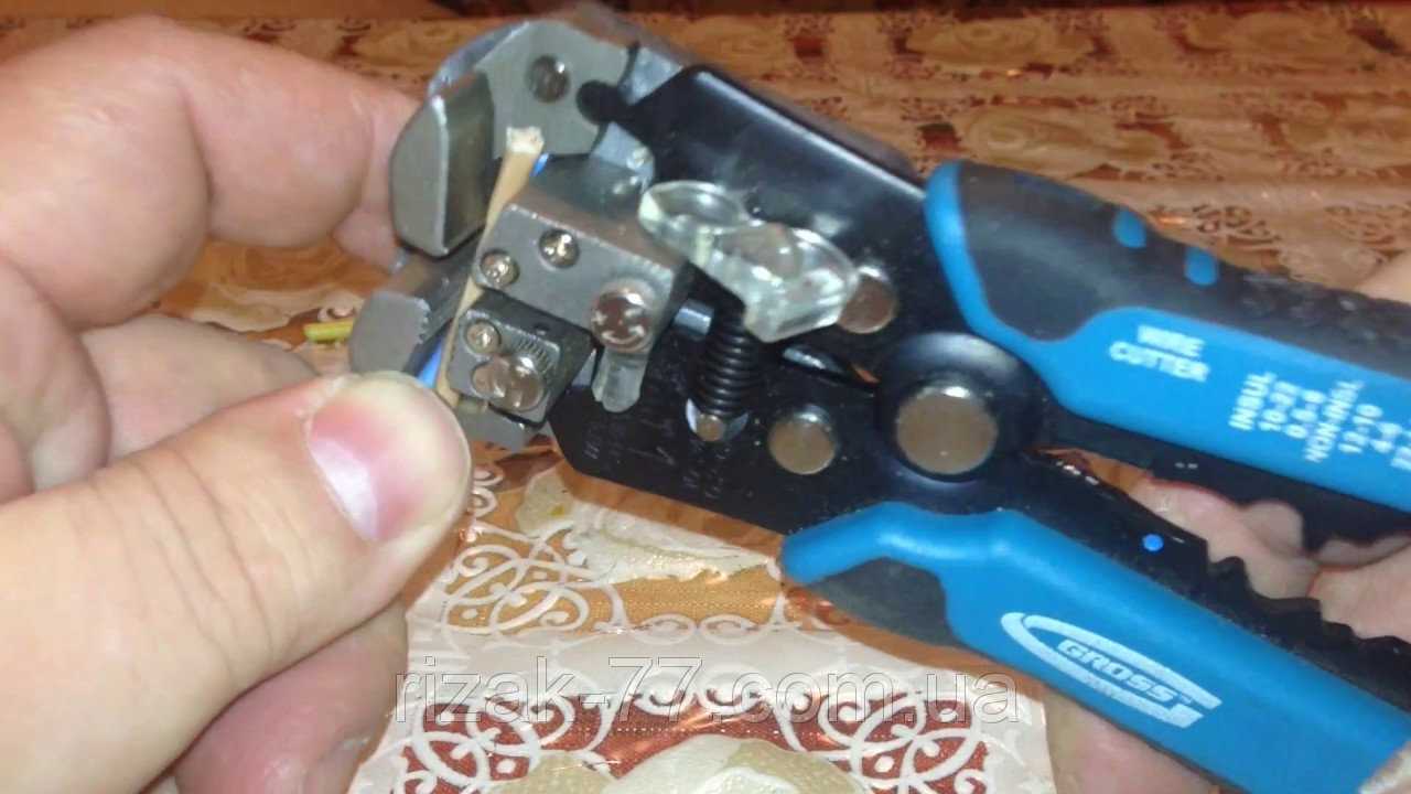 Данный инструмент поможет новичкам идеально выполнить электротехнические работы такого плана, ведь снятие изоляции с проводов не составит труда, потому что оно произойдёт автоматически, а гнездо самостоятельно подстроится под сечение провода. Возможно даже снятие изоляции с проводов невероятно мелкого сечения, потому что в районе губок присутствует специальная регулировка.